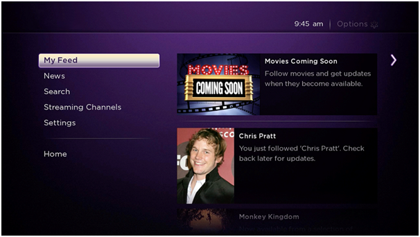 · The user can play their personal photo slide shows and music track from their PC through this Play On option on the Roku device.